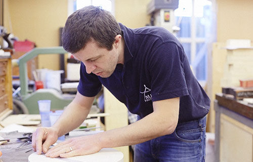 Railings that were cut down in WWII from a 17th Century Hall have been reinstated as part of a renovation project. These boxless setup patterns were created from drawings.